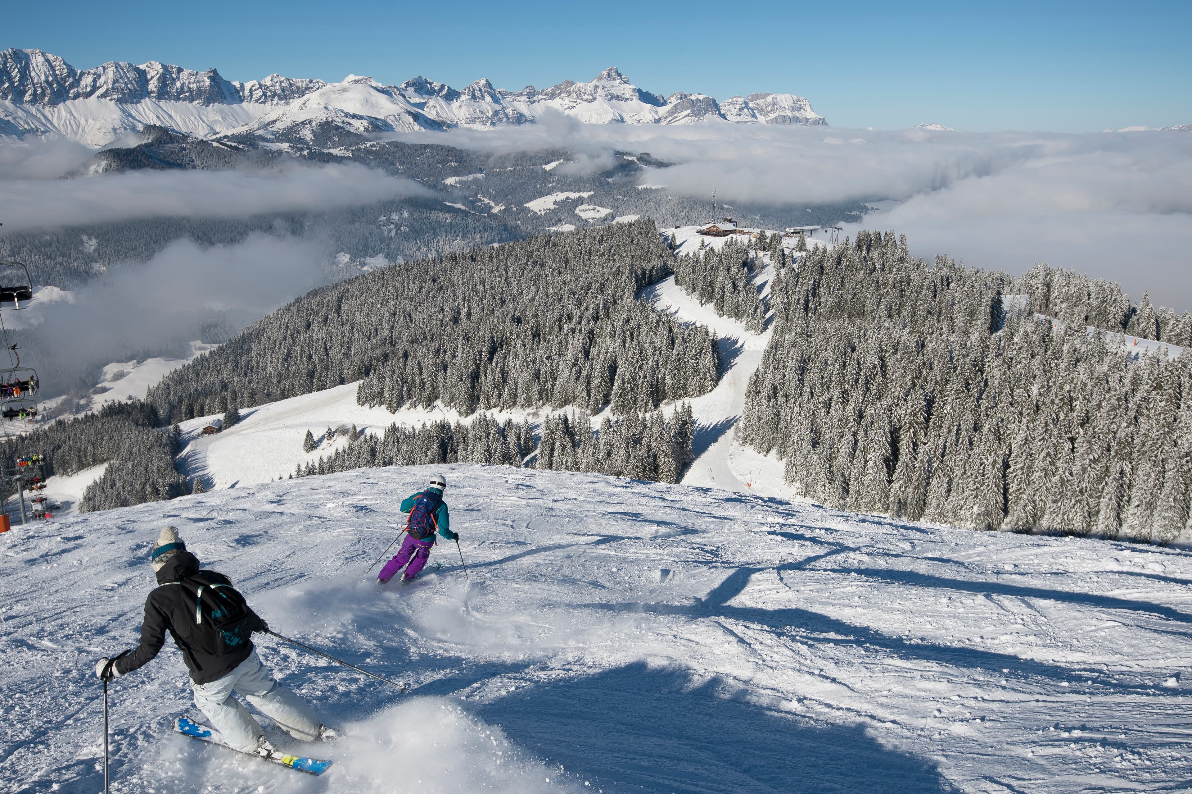 While Megève doesn't boast masses of elevation, snow cannons keep the ski slopes blanketed in pearly white stuff from mid-December to mid-April.
